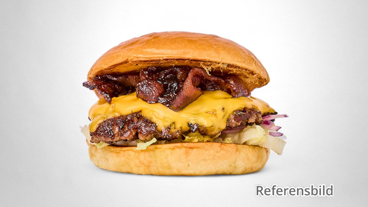 150gr oxfärs, bacon, cheddar, husets ketchup, senap, stekt lök.