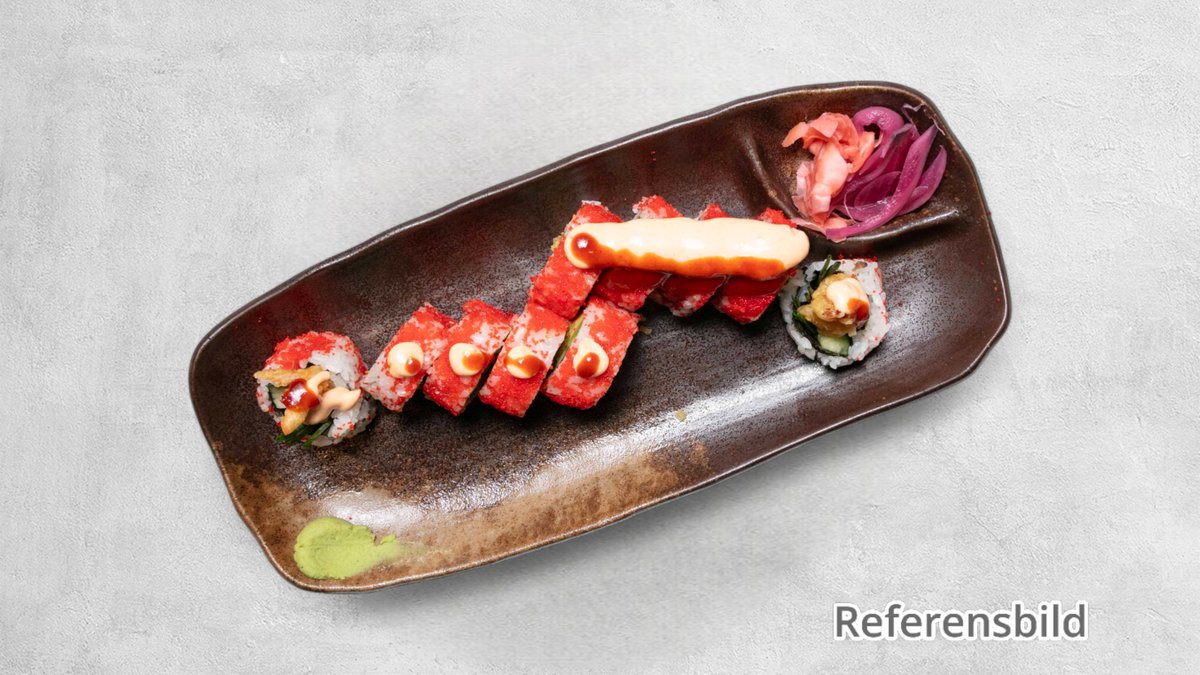 20 St blandade nigiri, 6 st maki shake, 8 st inside-out ebi avokado och 8 st inside-out tekka.