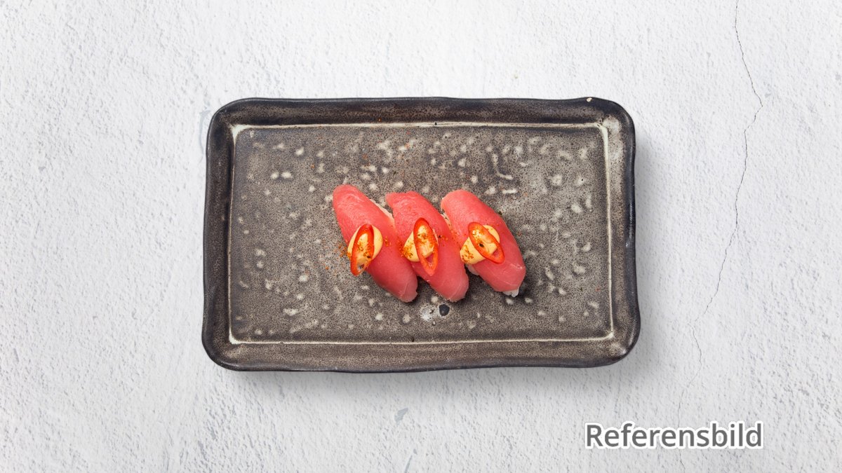 Tonfisk, japansk mayo, siracha, sesam och vårlök.