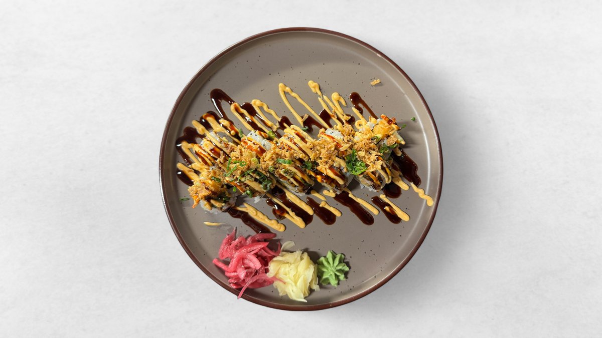 Krispig hemlagad kyckling serverad med sushiris, edamame, avokado och mixad sallad. Toppas med gurka, picklad rödlök, sesamfrön, chilimajonnäs och teriyakisås.