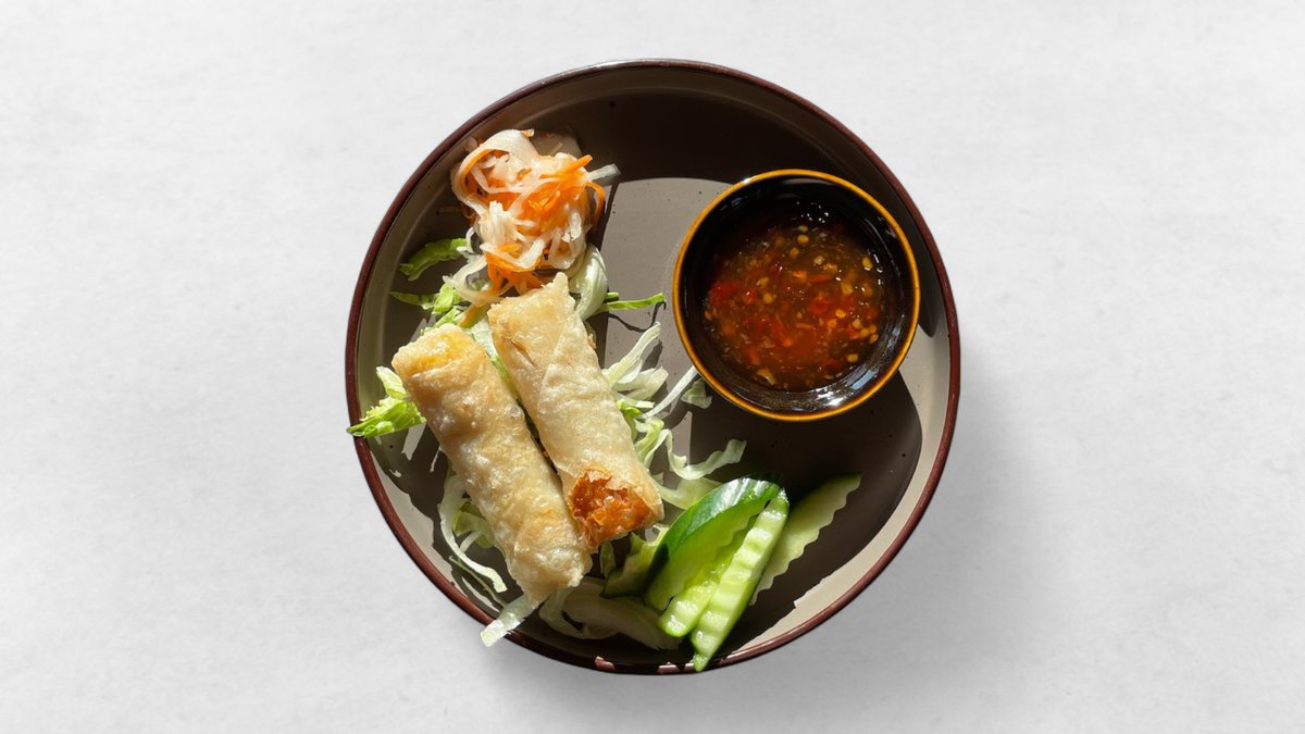 Med kyckling, vermicellinudlar, gröna ärtor, bönor, strimlad vitkål och schalottenlök. Sserveras med sweet chilisås. 2 st.
