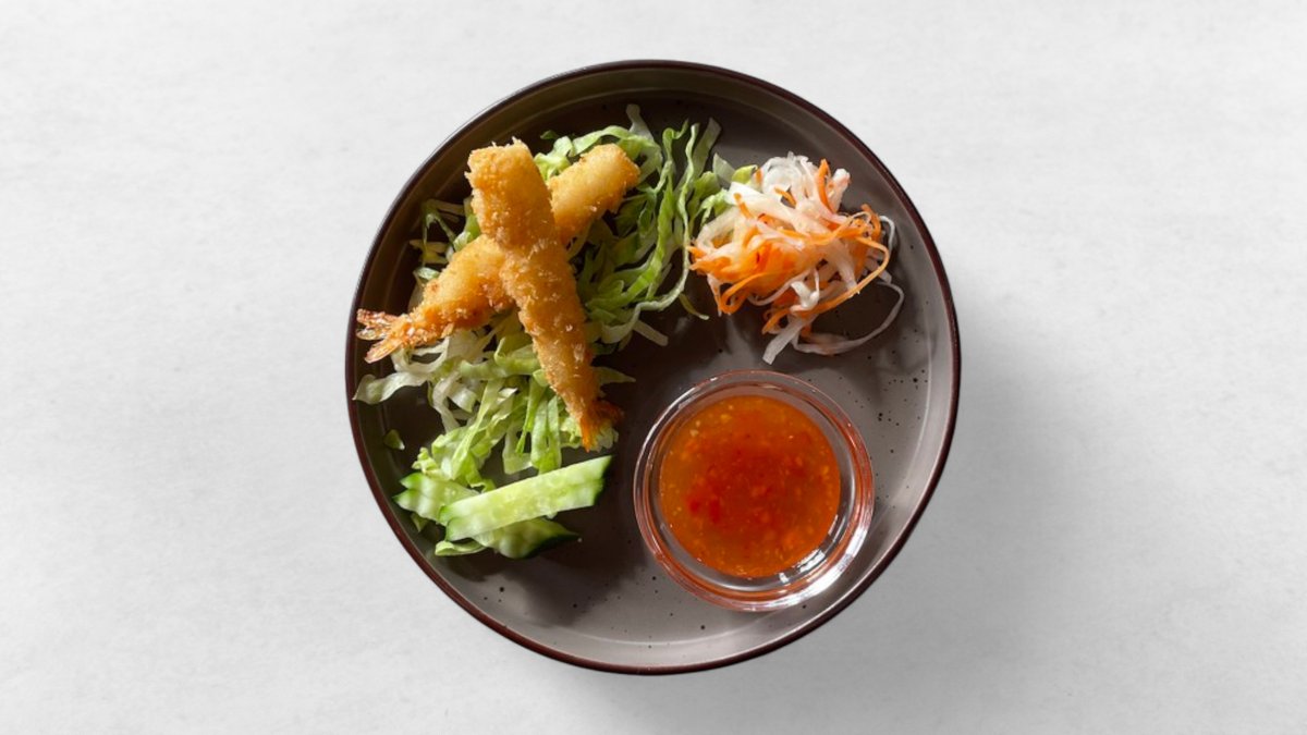2 st krispiga tempuraräkor, serverad med sötsur sallad och sweet chilisås.