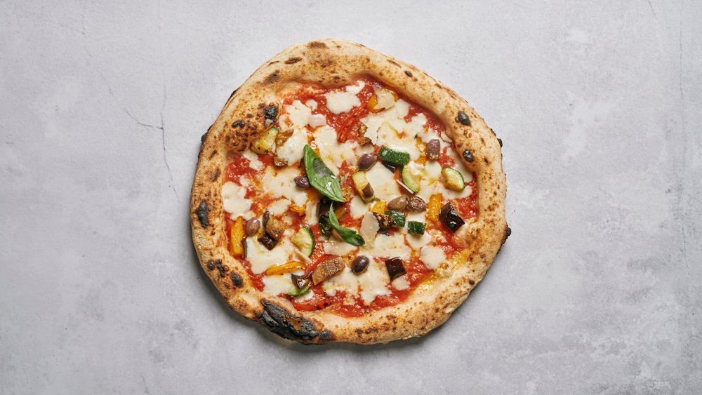 San marzano tomat, fior di latte, blandade grönsaker, vitlök, oliver, parmesan och evoo.