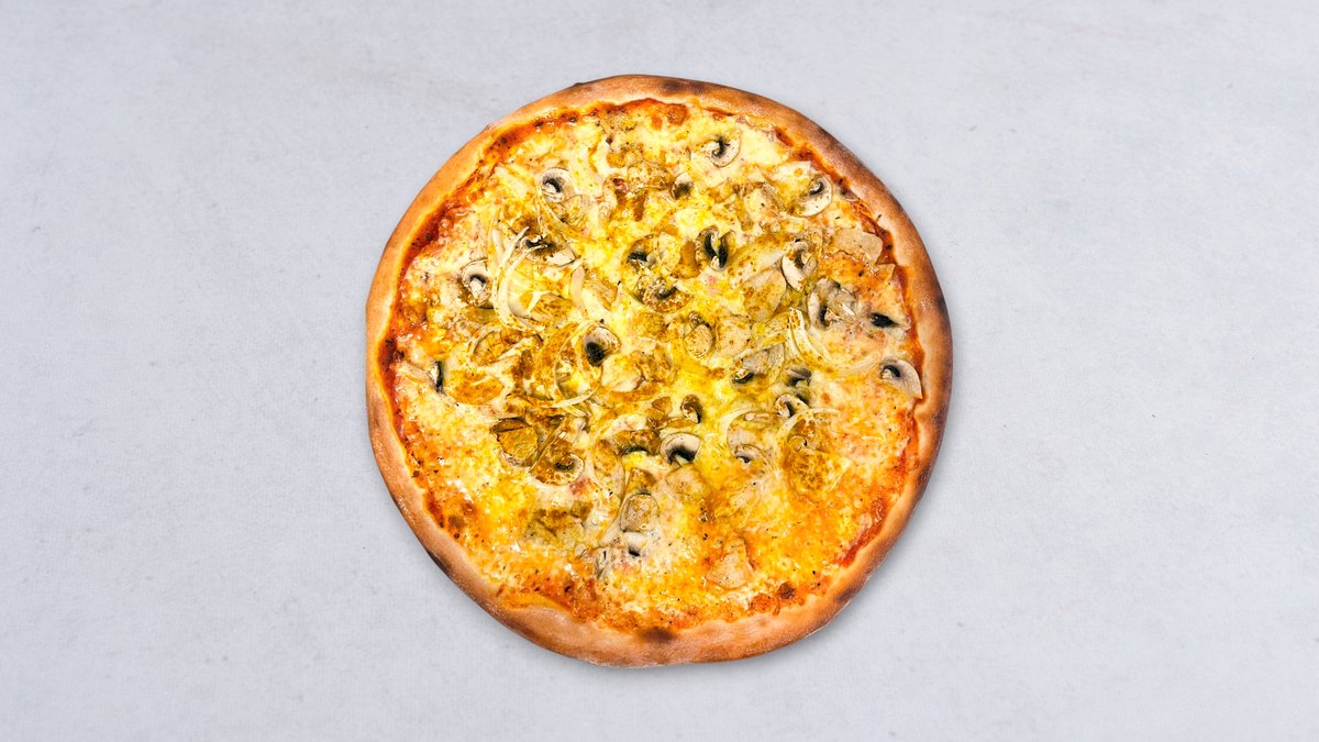 Mozzarellaost, kyckling, lök, champinjoner och bearnaisesås.