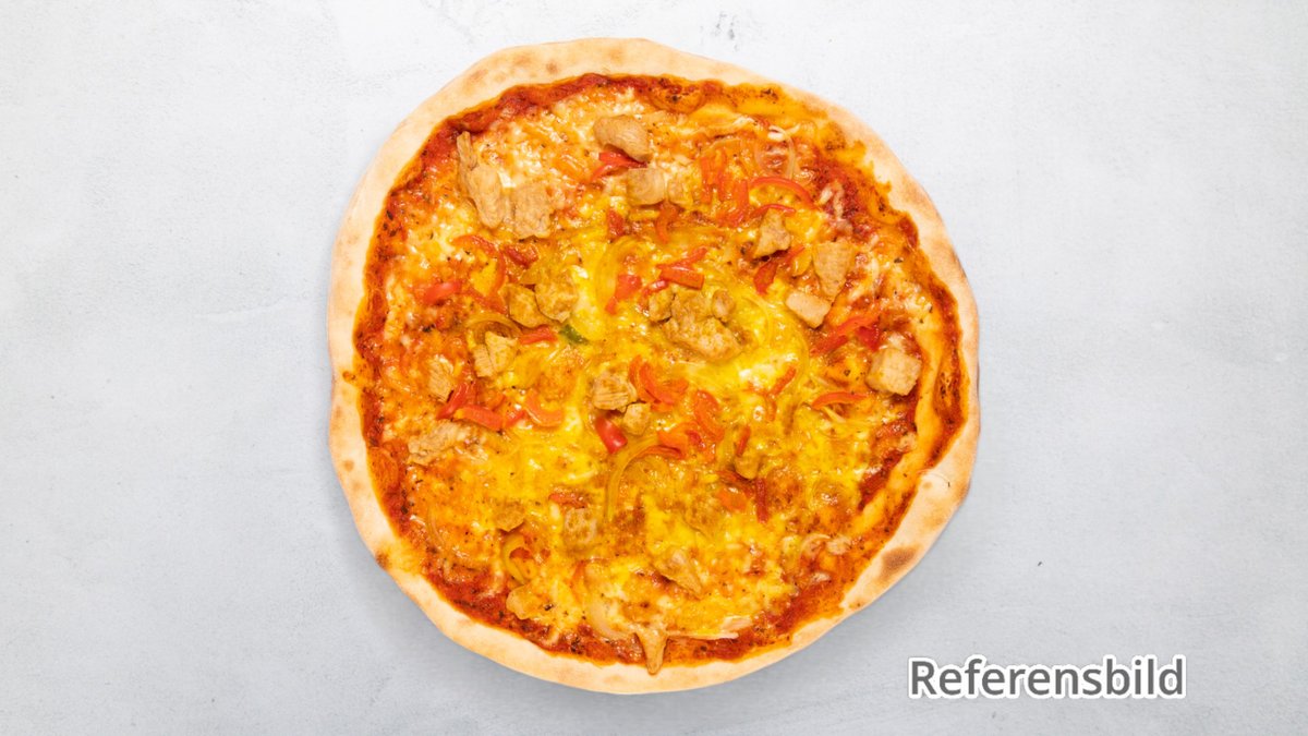Dubbelinbakad. Pizza med ox skinka (nötkött).