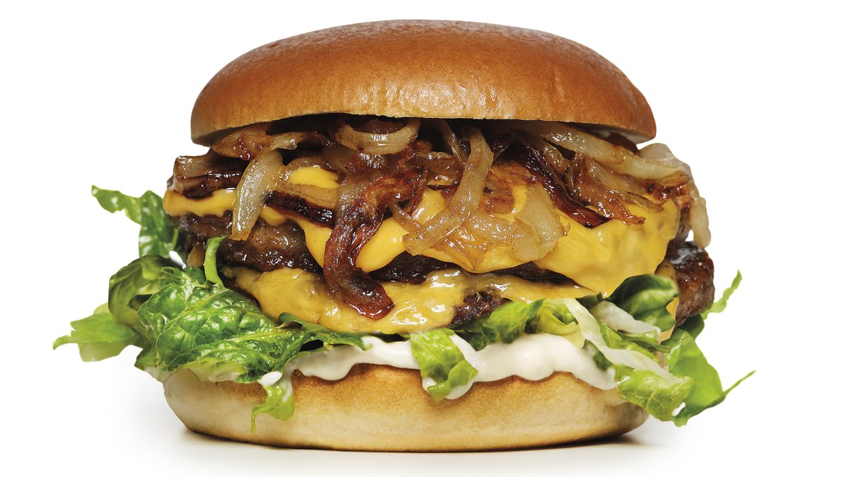 2x100 g smash burgare med smashdressing, gul lök, rostad lök och hamburgerost.