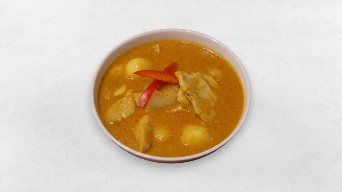 Gul massaman curry gryta med kokosmjölk, paprika, lök och potatis.