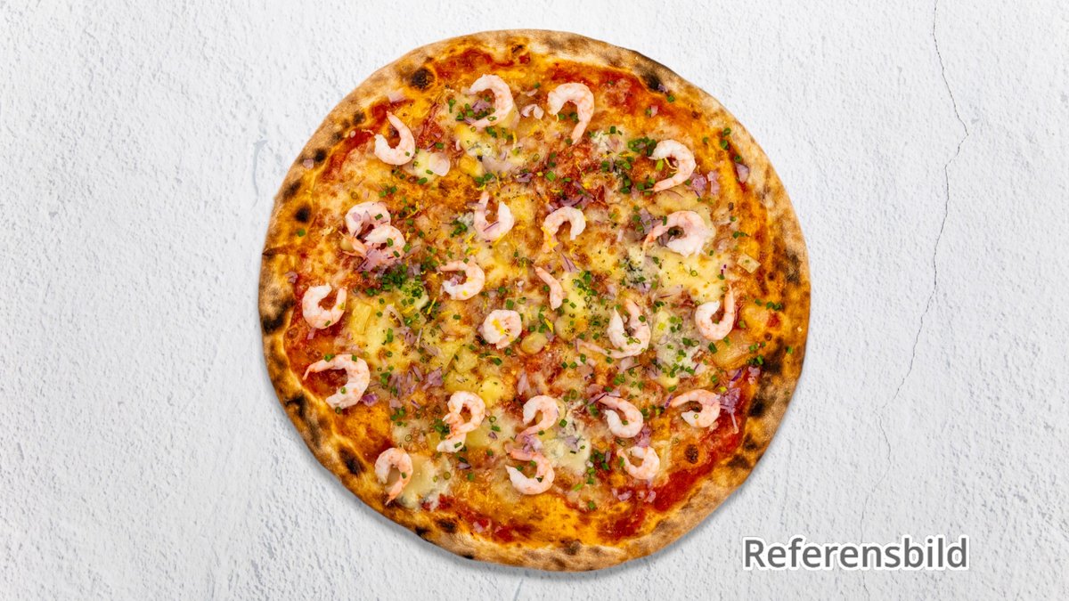 Pizza med räkor.