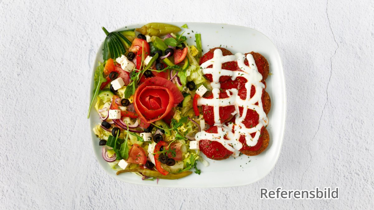 Sallad med salladsost och lök oliver.