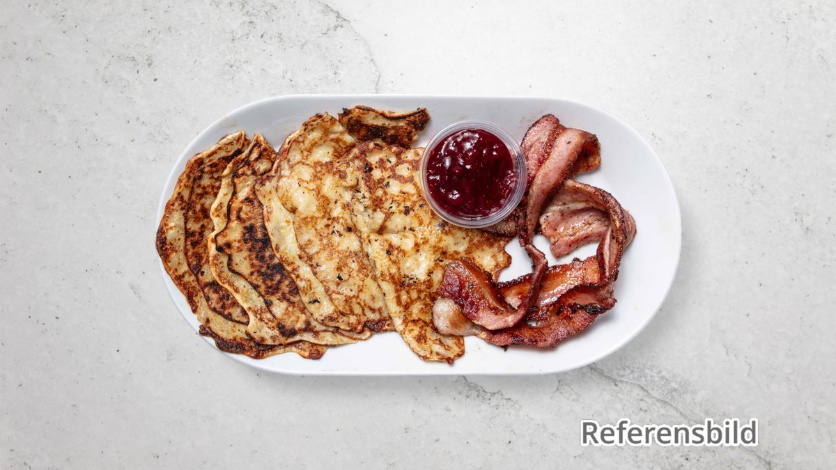 Serveres med stekt fläsk och lingonsylt.