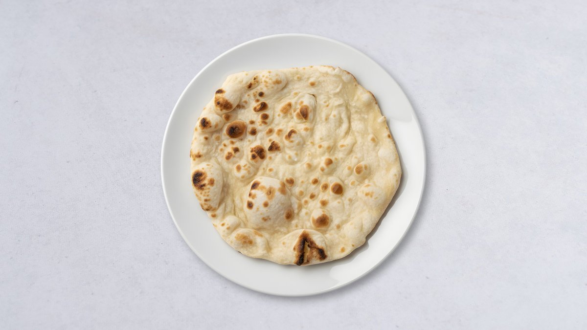 Kryddig kyckling i tunnbröd med grönsaker och sås.
