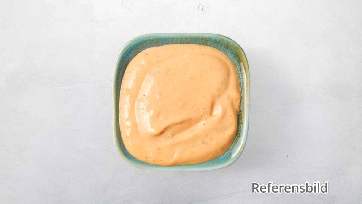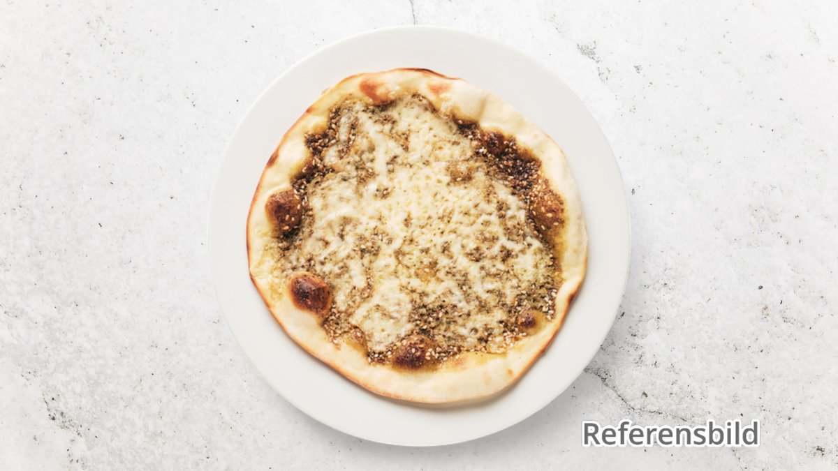 Tomatsås, ost, champinjoner, lök, jalapeños och tacosås.