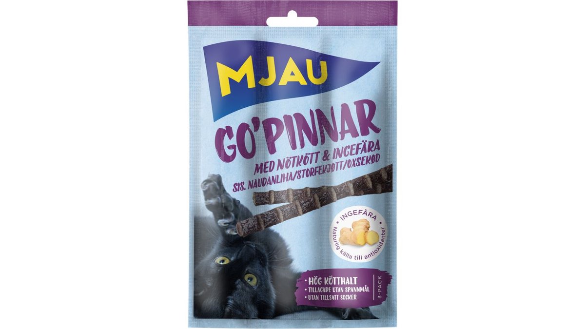 Kattsnacks Gopinnar med Nötkött & Ingefära 3-pack 15g - Mjau