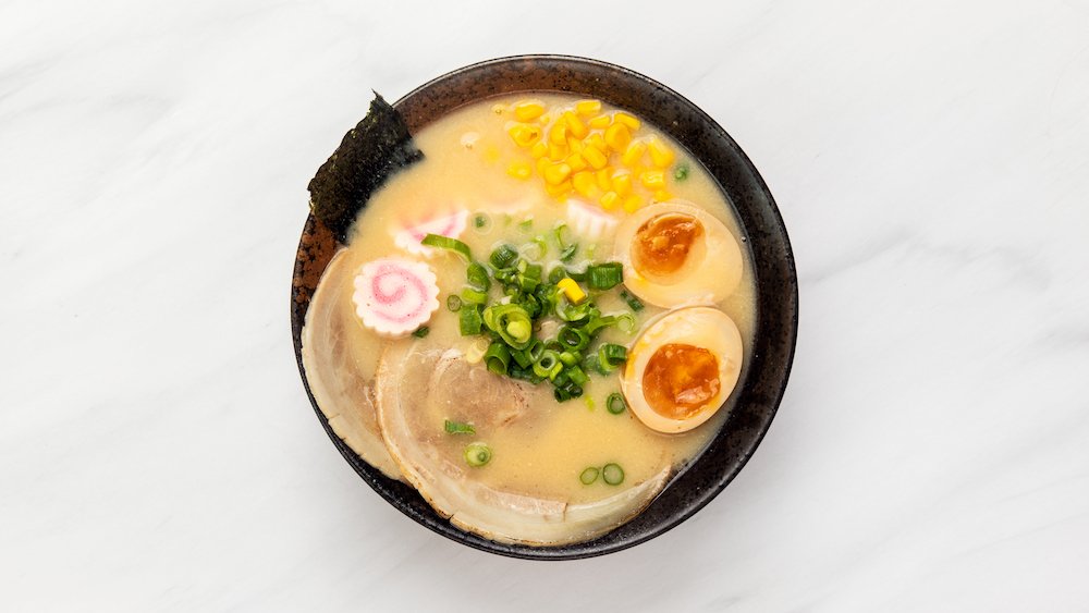 Miso soppa med nudlar, yakiniku kött och grönsaker.