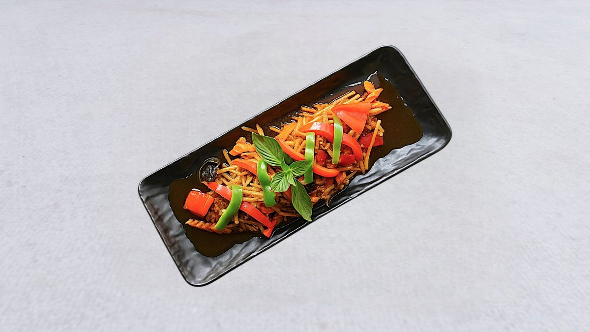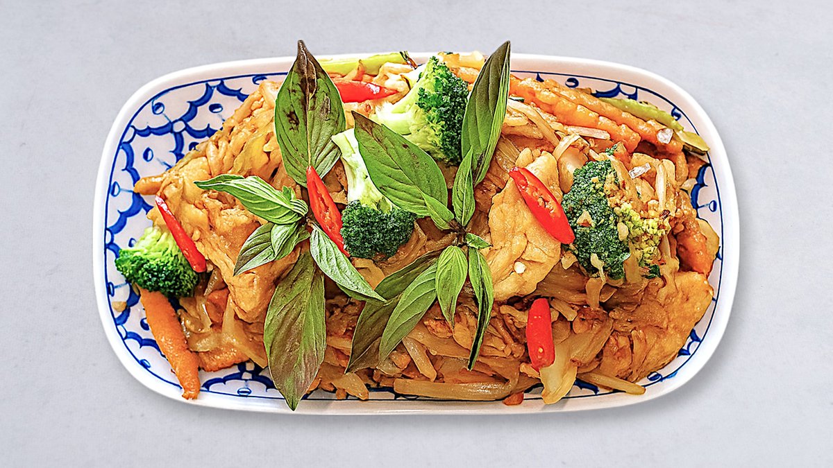 Wokad chili, vitlök thai hot basilika med ostronsås, soja.