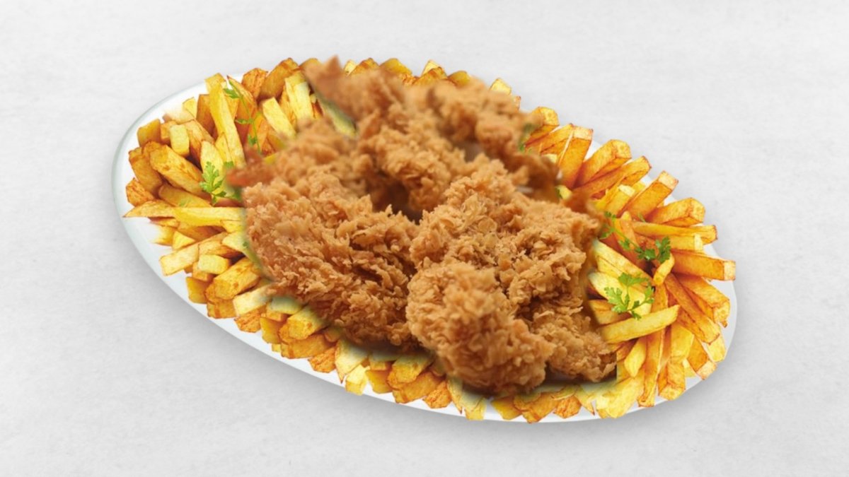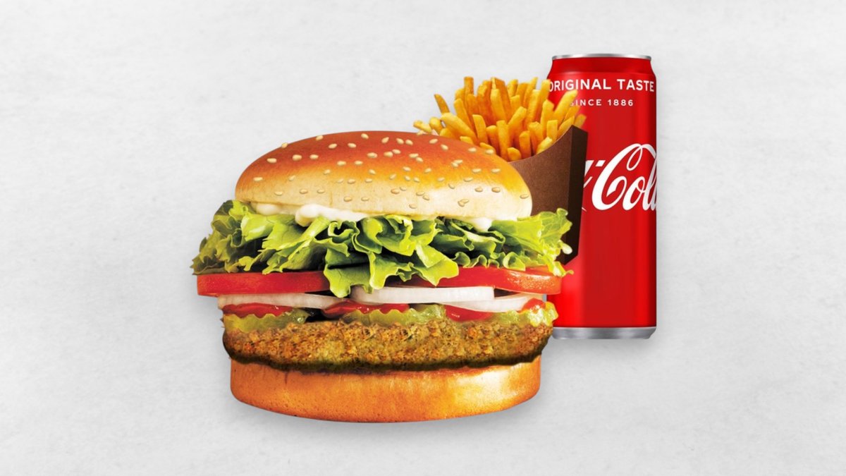 Kyckling eller falafel, saltgurka, tomat, isbergssallad, pommes, valfri sås och en valfri 33 cl dryck.