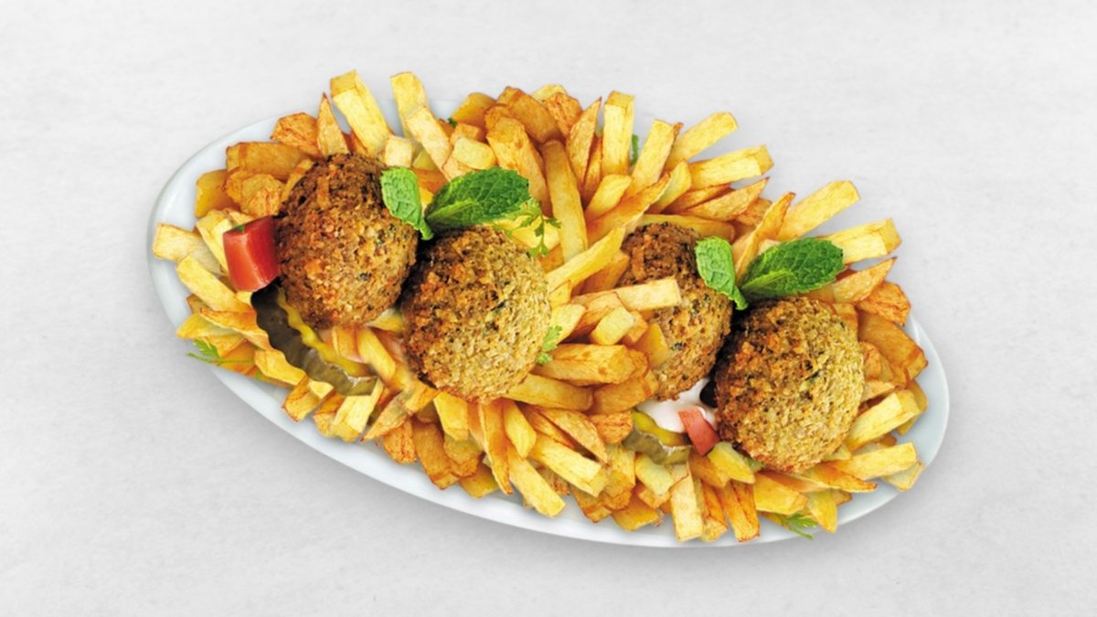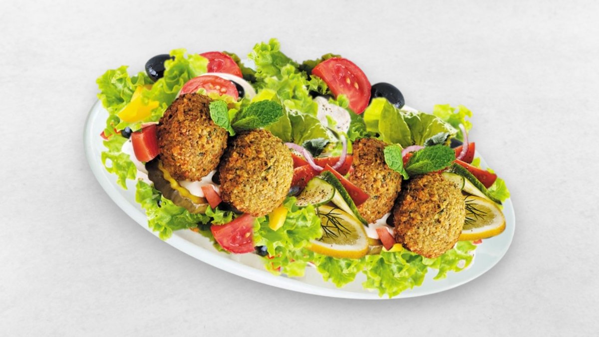 Falafel, kyckling eller kebab med saltgurka, tomat, isbergssallad, rödlök, pommes, valfri sås och en valfri 33 cl dryck.