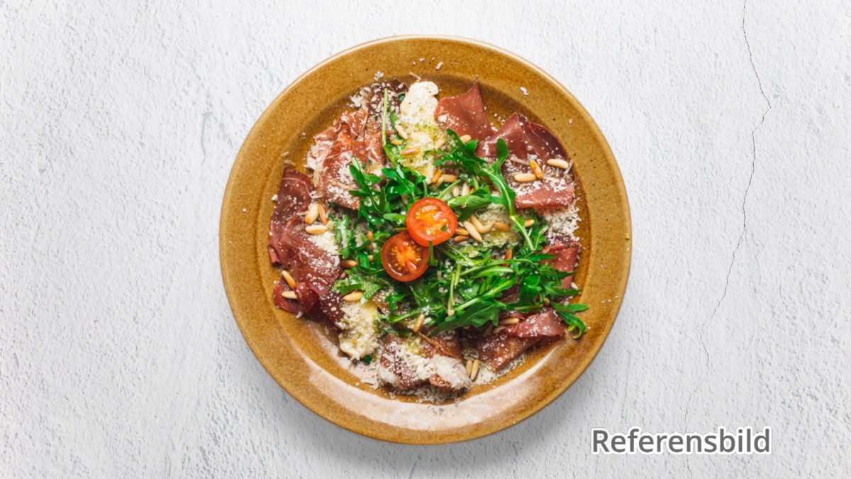 Oxfilé, rostad bröd, löjrom, rödlök, äggula, salt och peppar.