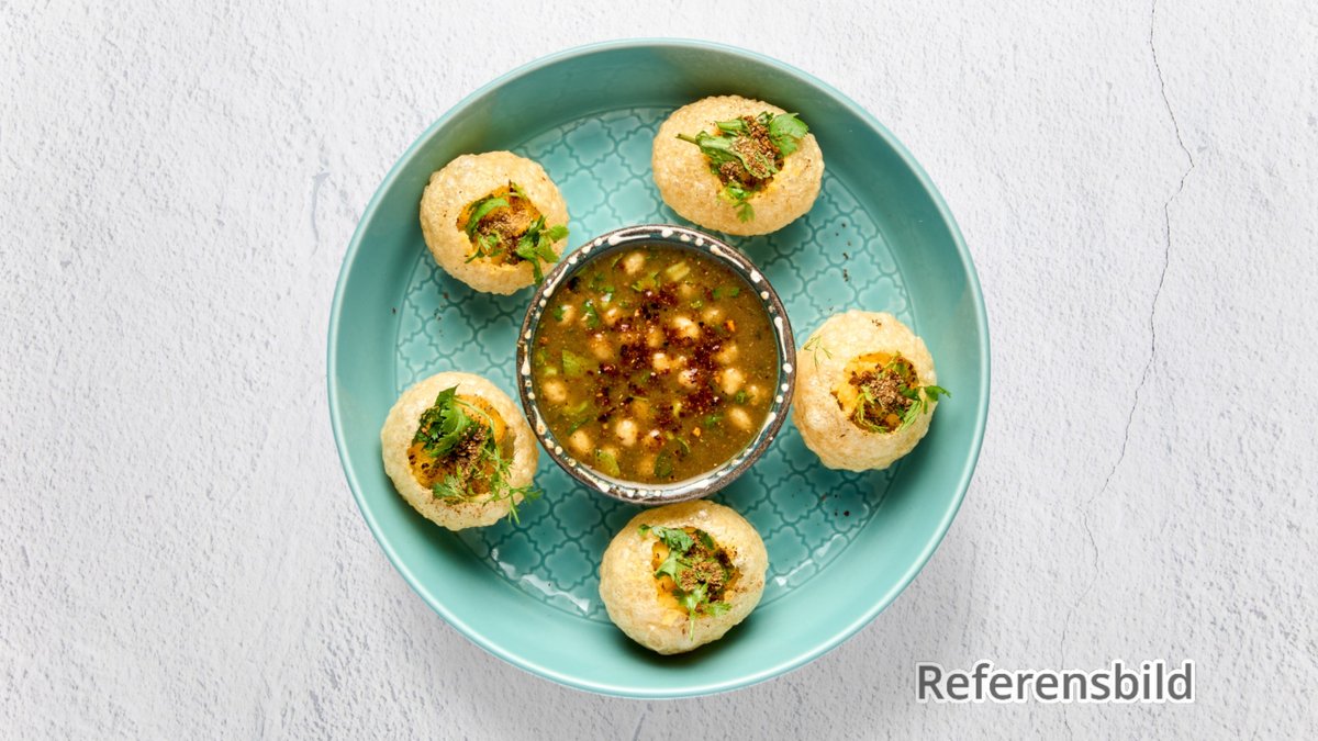 Friterade skålar fyllda med kryddig och syrlig blandning.