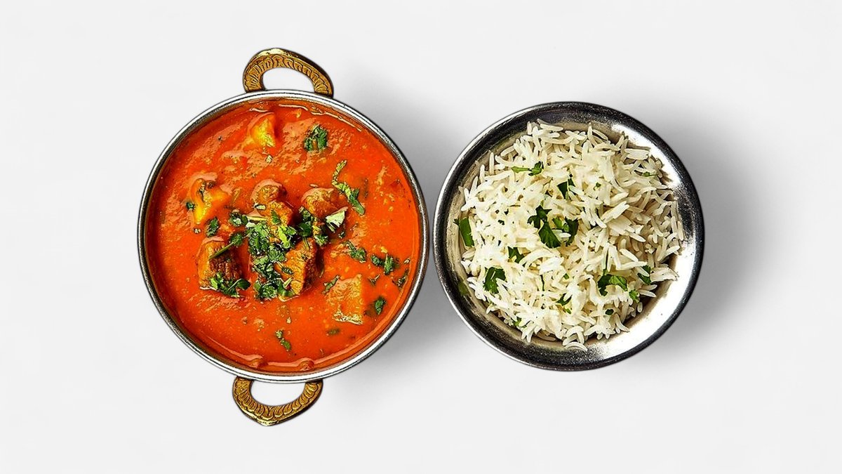 Rätt med hemlagad sås av färska tomater, lök, koriander, kummin, kanel, ingefära, vitlök och speciella kryddor. Serveras med ris eller bröd sallad och myntasås.