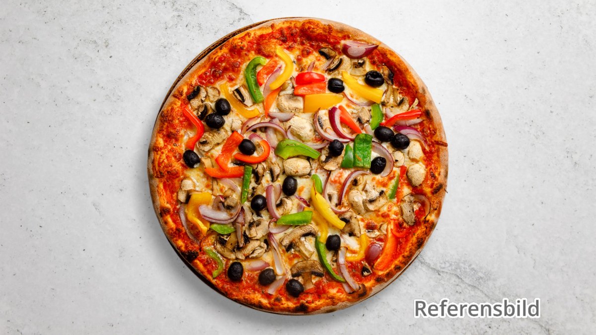 Alla pizzor serveras med mozzarella och tomatsås.