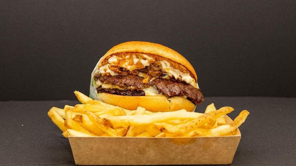 Senapsstekt kött, cheddar- och emmentalerost, stekt lök och tryffelmajonnäs. Obs - endast burgaren.