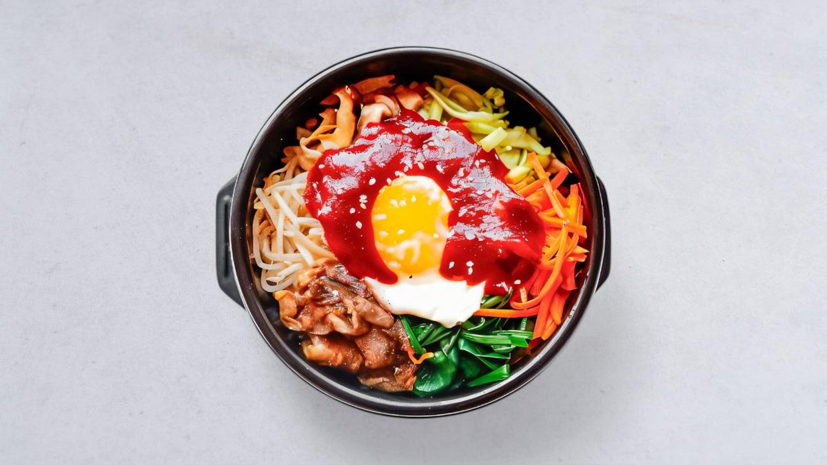 Yakiniku entrecote, hemgjord kimchi, sjögräs, avokado, lilakål, morot, kimchi sås, ägg & ris