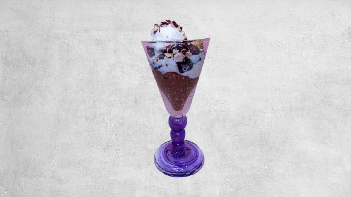 Vaniljglass, Nutella, brownie och krossade hasselnötter.