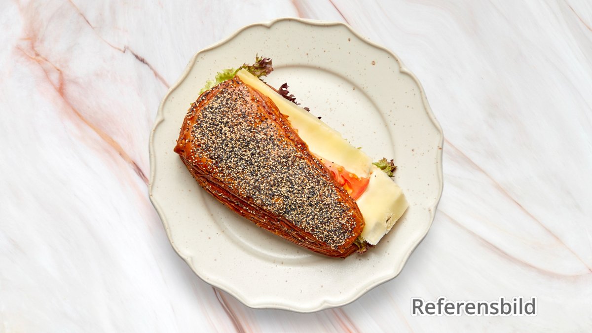 Toast med ost och valfri protein, sallad och sås. Serveras med bryggkaffe eller te.