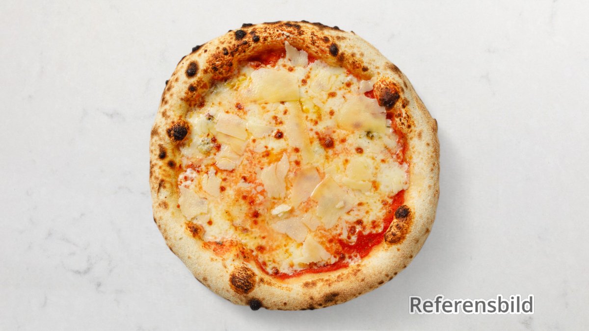 Tomatsås, ost, champinjoner, lök, oliver, kronärtskocka, f. tomater, paprika