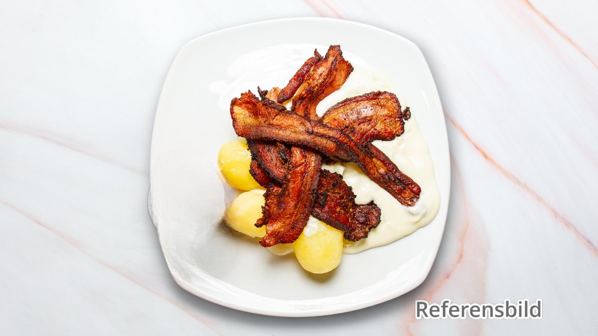 Med bacon, svartpeppar, äggula, f.vitlök, grädde.