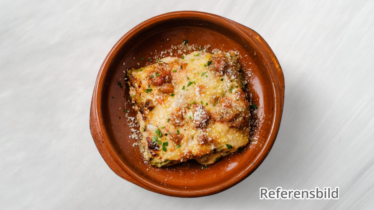 Med köttfärsås, svarta oliver, f.vitlök, tomatsås.