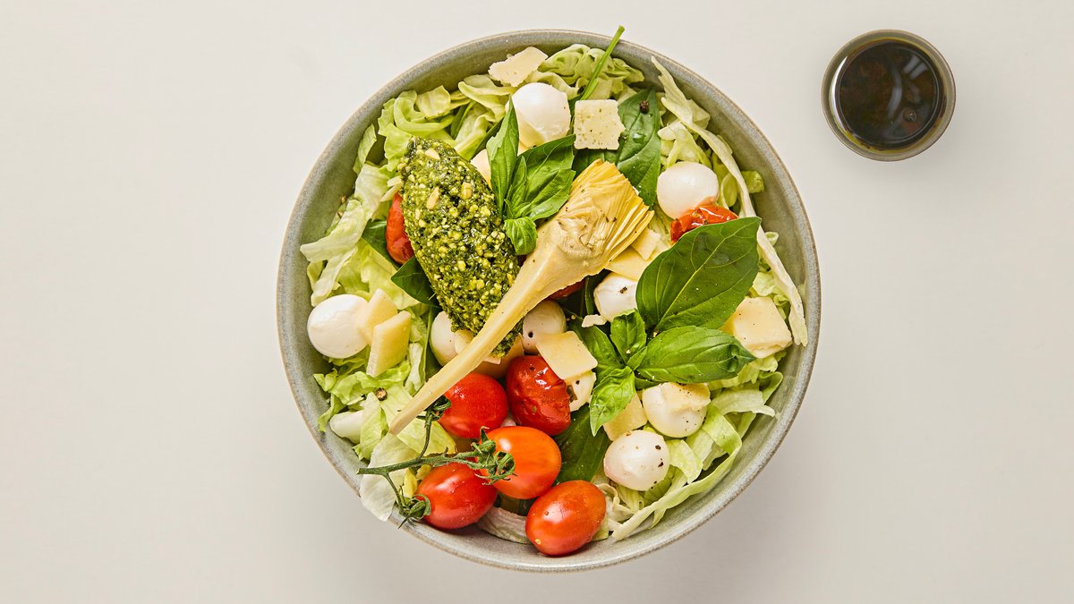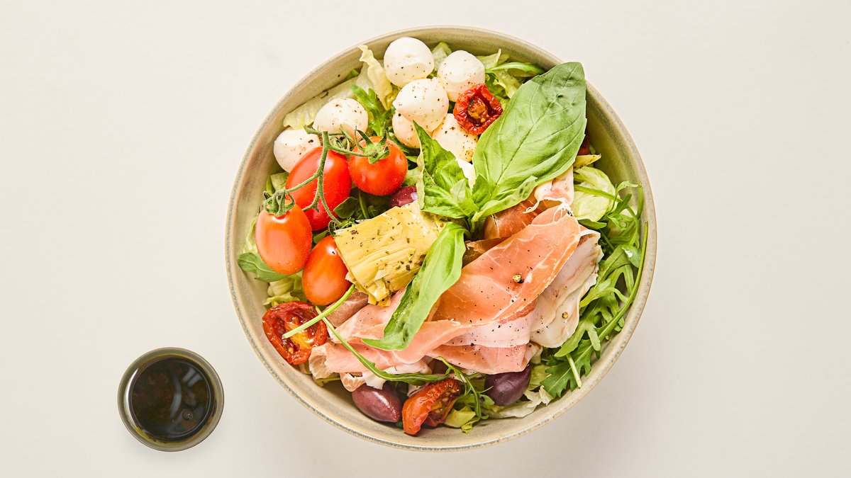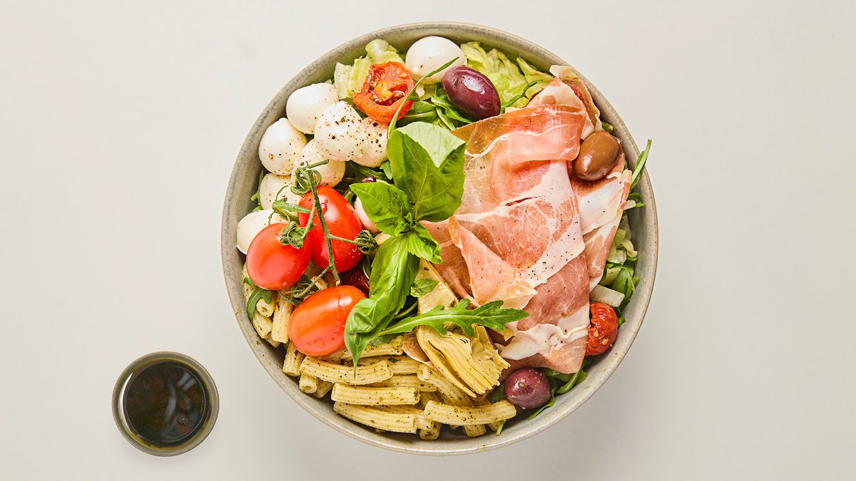 Paninis glutenfria version på den populära proscuittopastan. Grönsallad ersätter pastan och kommer som vanligt mozzarella, kronärtskocka, färsk- och semitorkad tomat, ruccola, gurka, oliver och basilika.