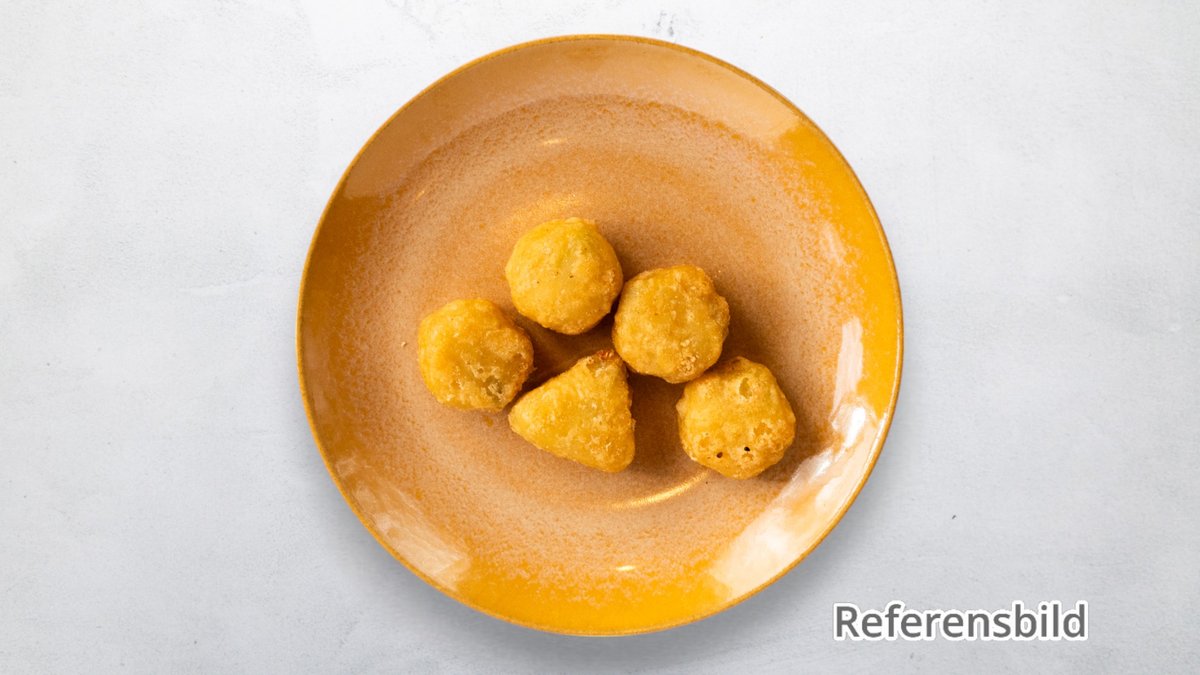 Friterad halloumi är krispig och gyllene, serveras med grönsaker och sås.