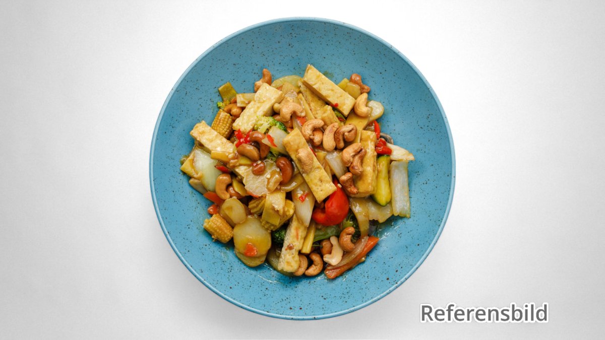 Wok med grönsaker, chiliolja, ostronsås och cashewnötter.