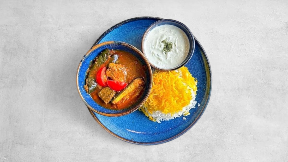 Khoresht Bademjan, är en mycket omryckt gryta från det persiska kötet. En nyttig gryta med kalvkött eller högrev, zucchini och aubergine smaksätts med tomatsås, lök. Serveras med tsatsiki och toppas med saffranris.