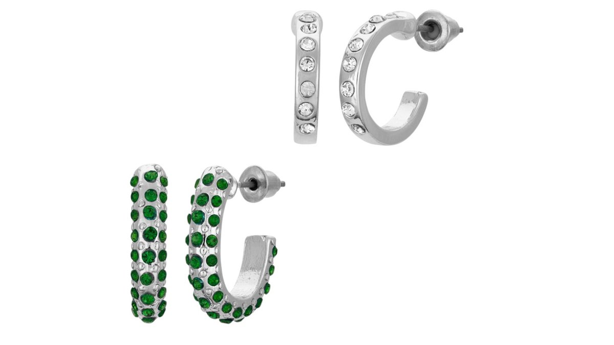 Örhängen Små Rund Creol Kristall Mörk Grön Vit Vera