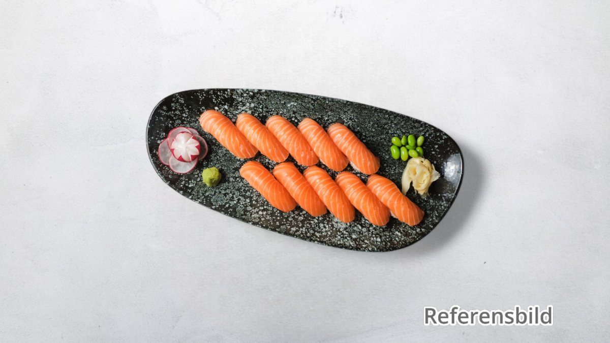 9 lax, 3 crabstick, 6 avokado, 5 räkor och 22 California maki.