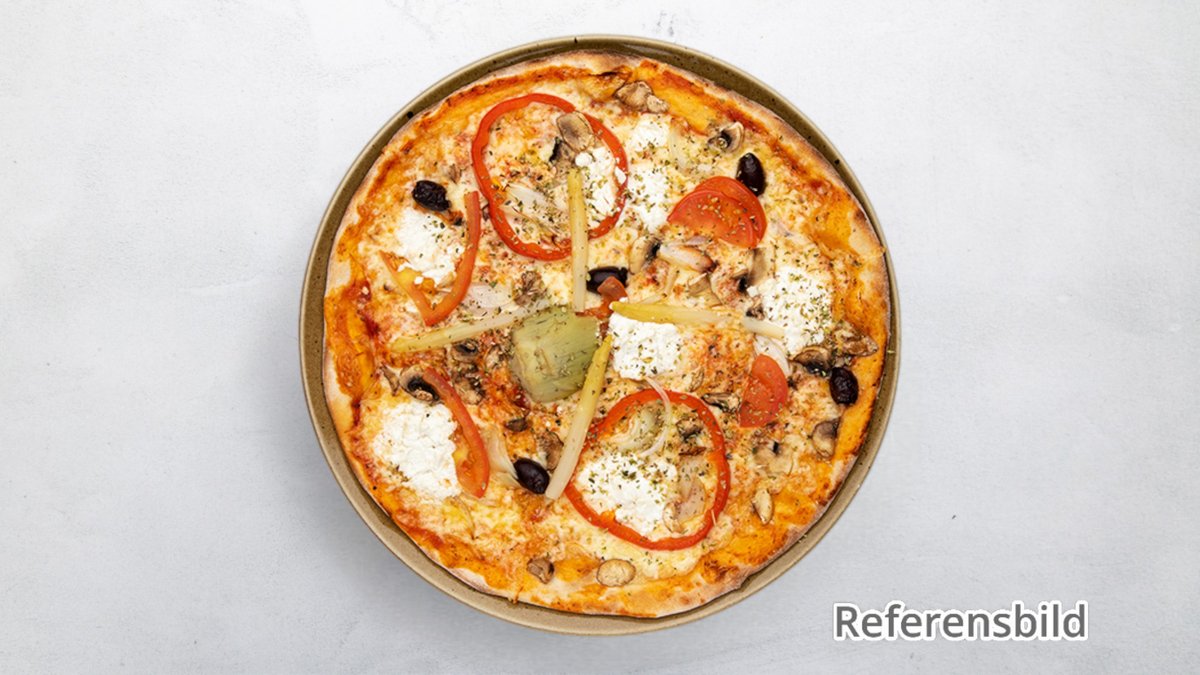 Paprika, lök, champinjoner, sparris, kronärtskocka och oliver.