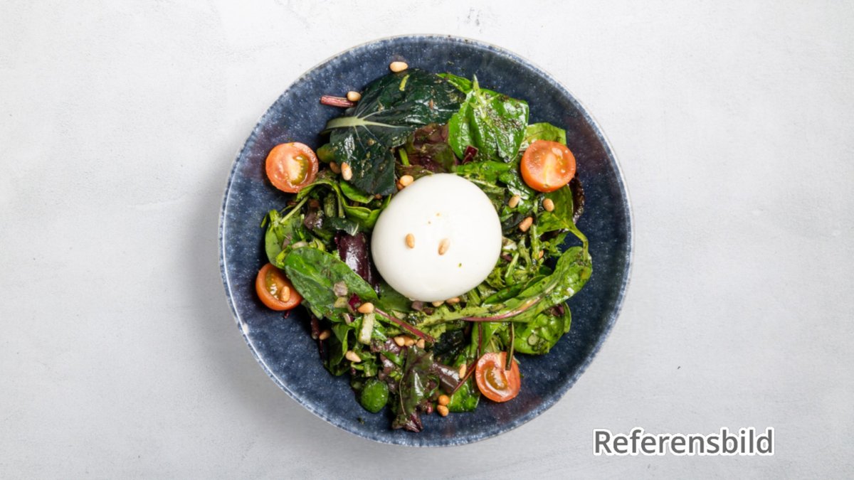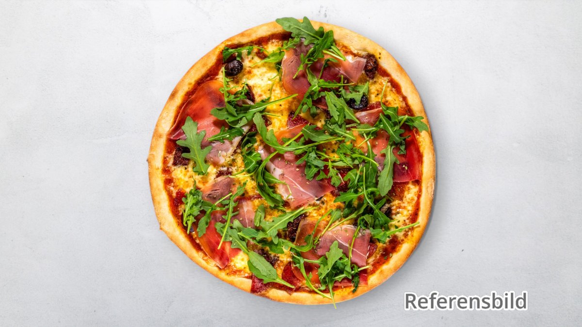 Mozzarella, lufttorkad skinka, soltorkad tomat och ruccolasallad.