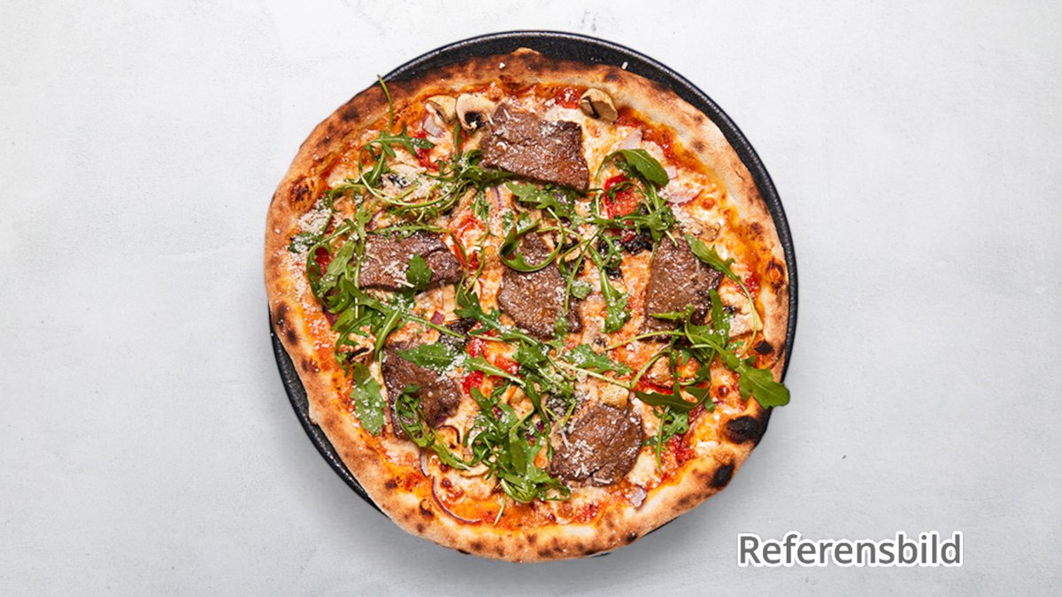 Oxfilé, fetaost, champinjoner, paprika och oliver.