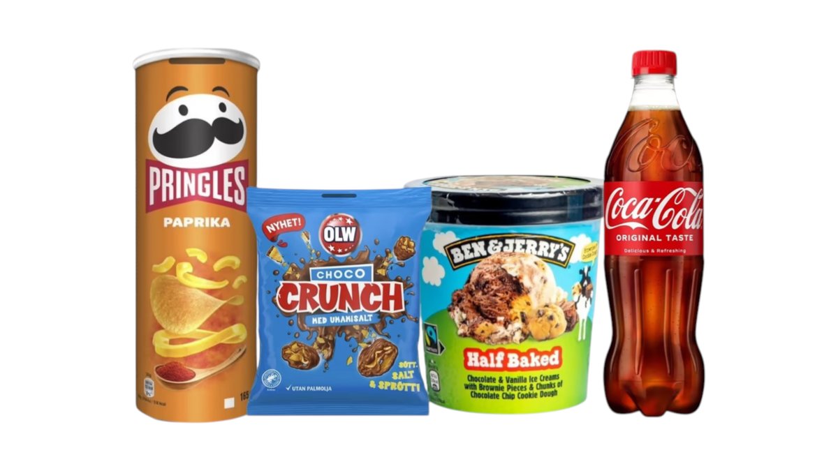 199,99 kr246,96 krChips Sour Cream & Onion 165g - Pringles & Glass Half Baked 465ml - Ben & Jerry's & Jordgubb Frystorkad Vit Choklad 125g - Exotic Snacks & Coca-Cola Original Taste 50cl