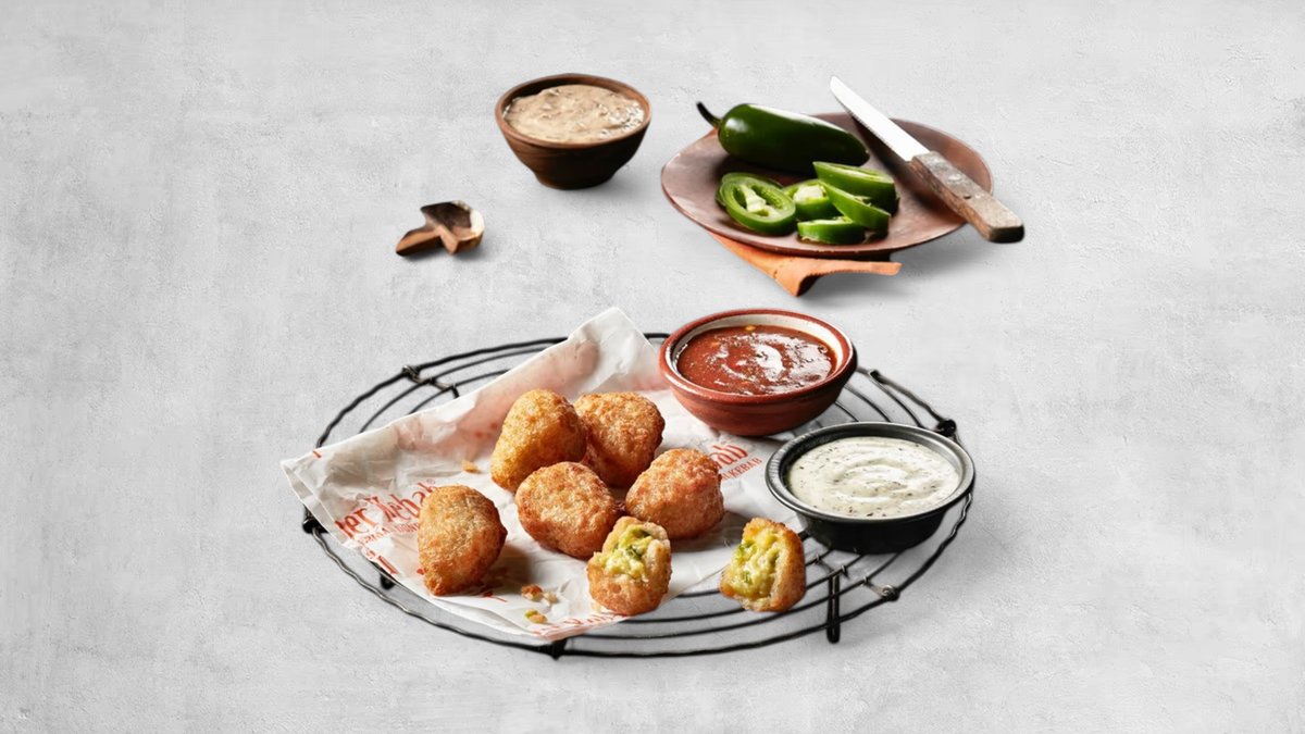 Starkt kryddade pommes frites, jalapeños och smält cheddarost.