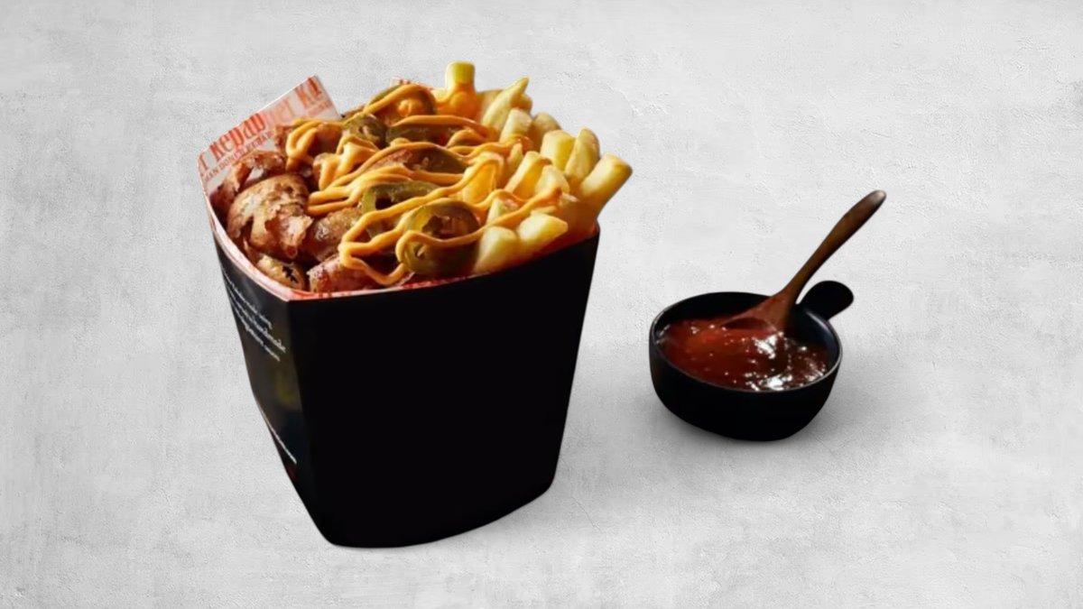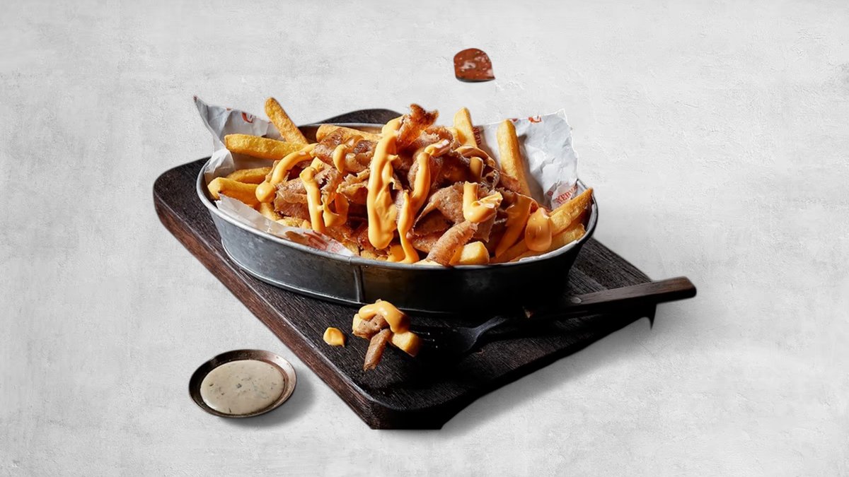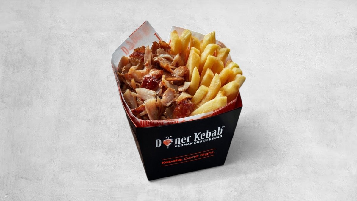 Boxen innehåller pommes med kalv, kyckling eller mixkött som väljs i nästa steg. Boxen serveras med såserna vitlök, mild vid sidan om.