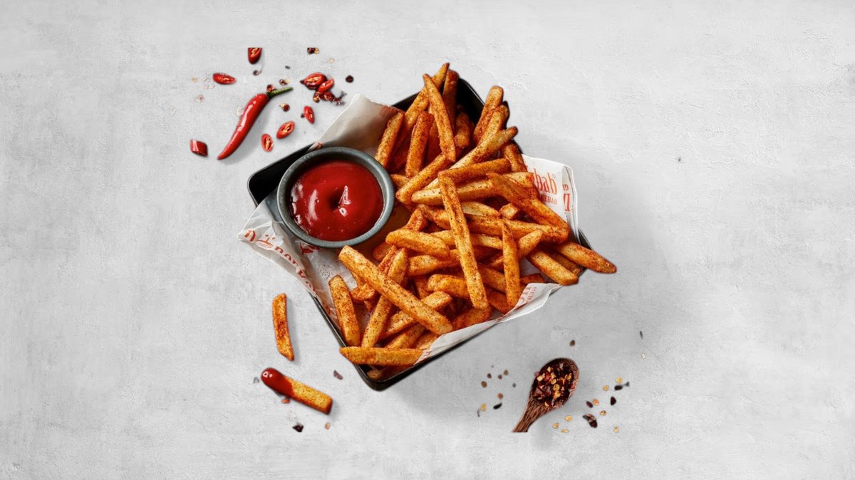 Våra Crispy Fries täckta med stark chilikrydda.