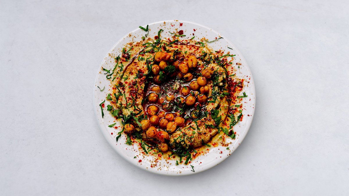 Serveras med rostade kikärtor, persilja och jalapeño.