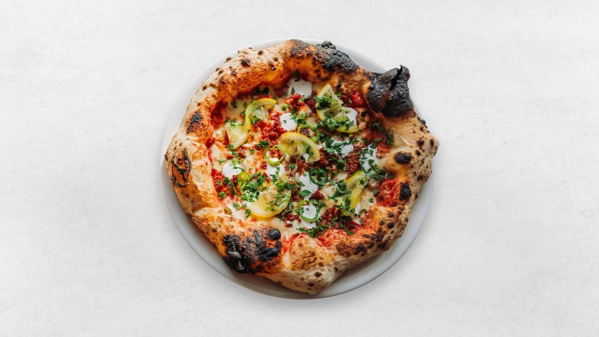 San Marzano, Fior di Latte, färskost, jalapeño, picklad citron och persilja.