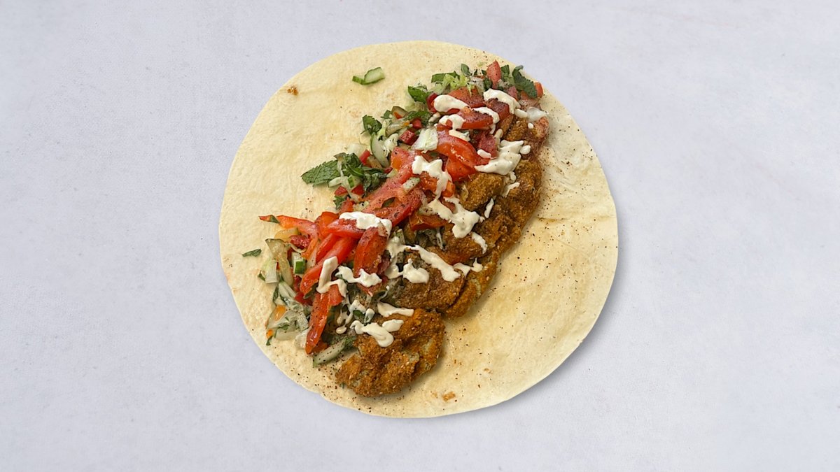 Serveras med krispiga falafel, tahinisås, sallad, tomater och gurka.