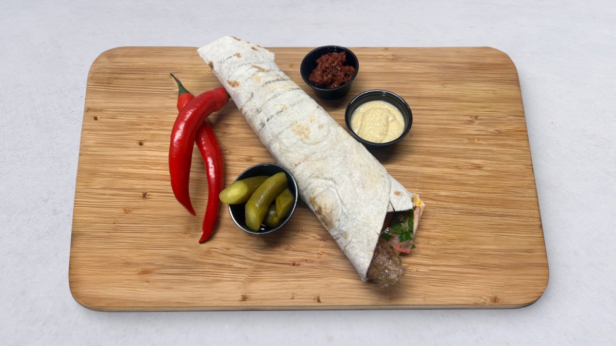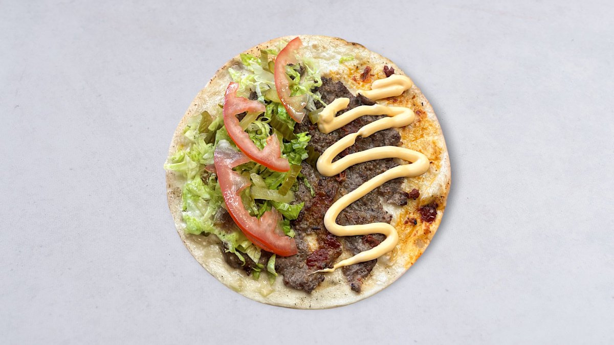 1 st. Taco fylld med saftigt kryddat lammkött, toppade med sallad, saltgurka och smält cheddarost.
