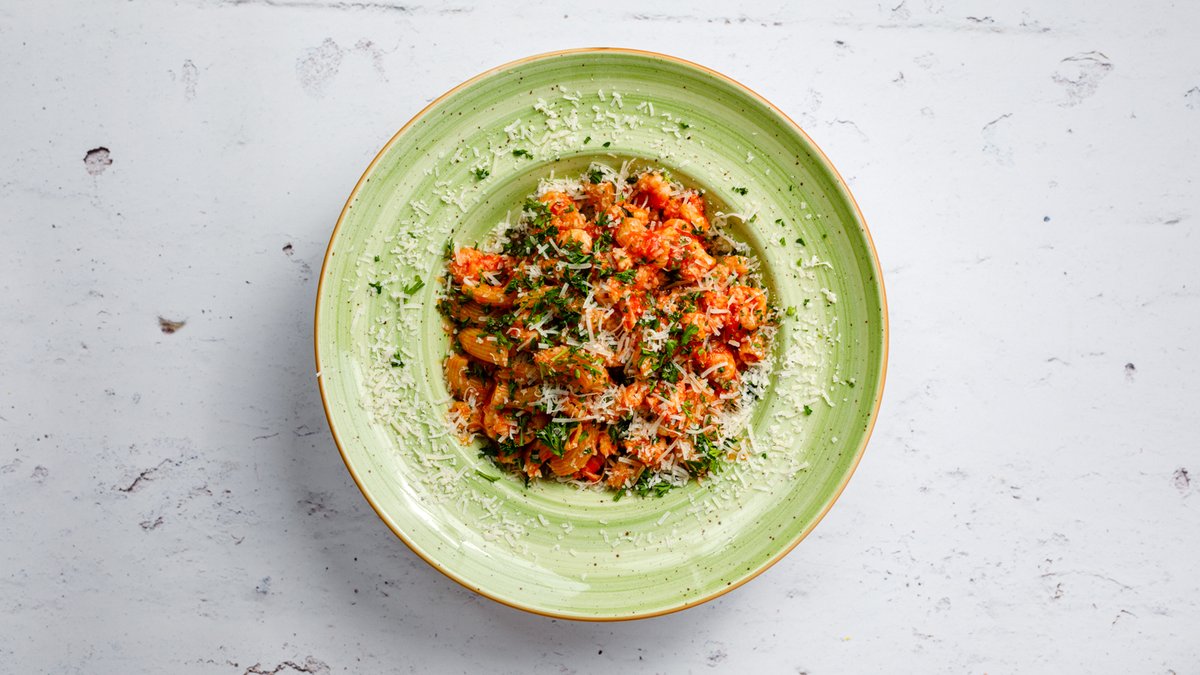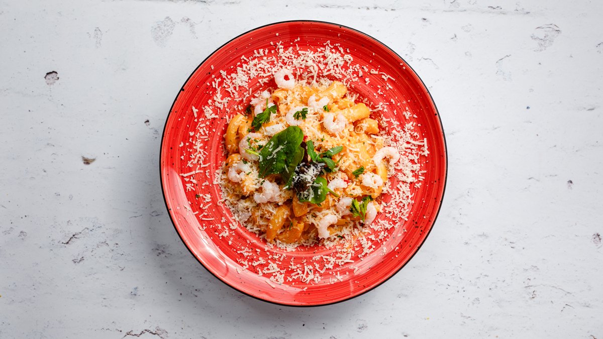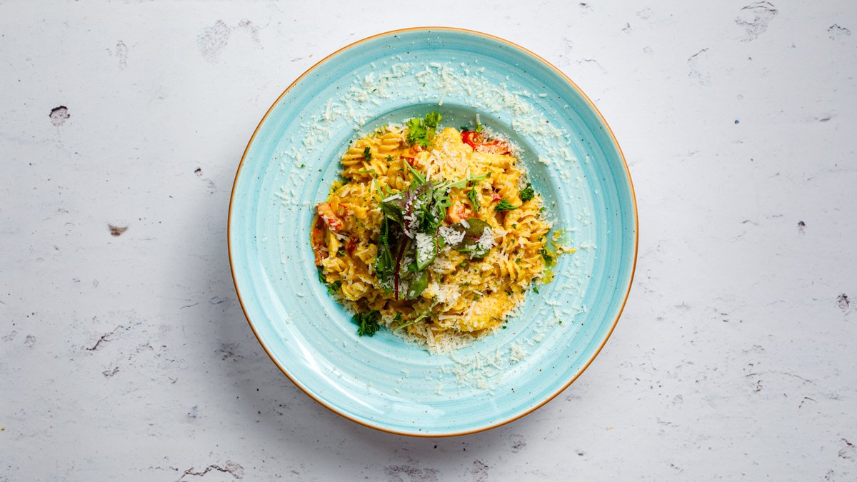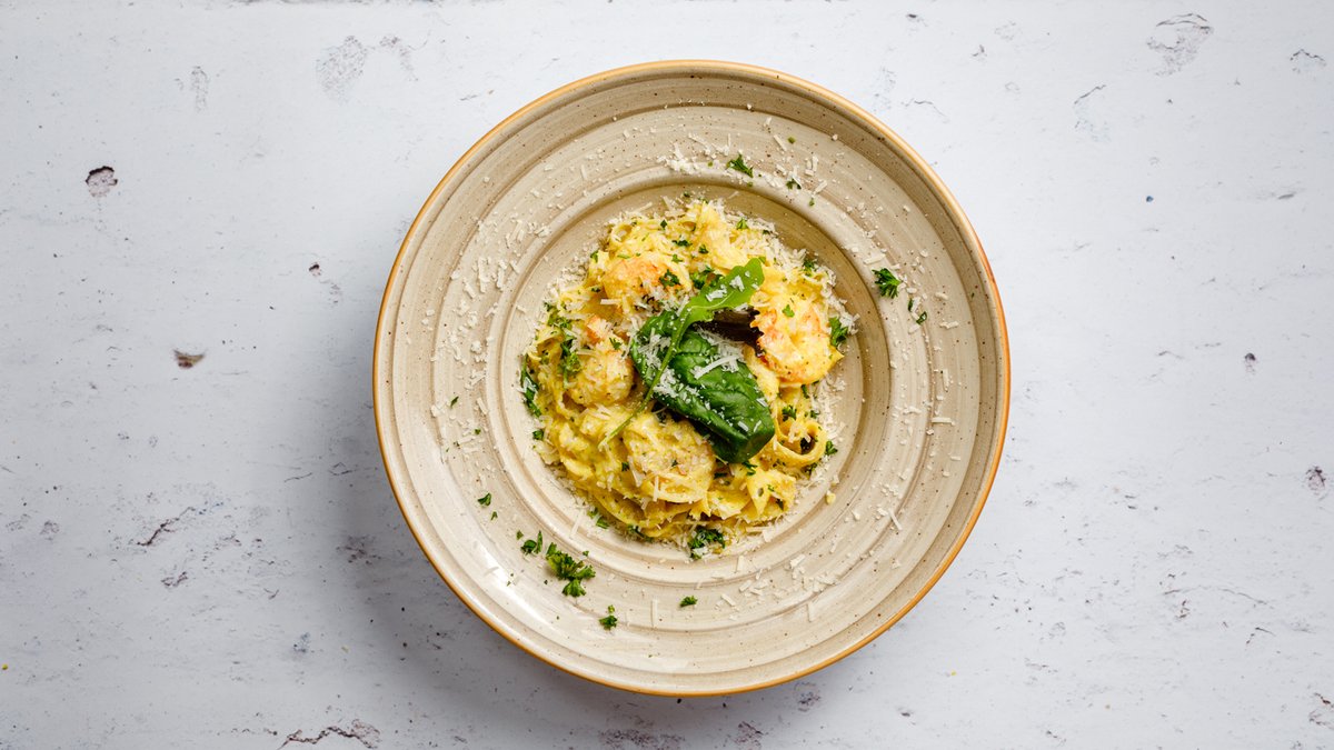 Frästa scampi i smör, vitlök, grädde, saffran och vitt vin. Toppad med chili.